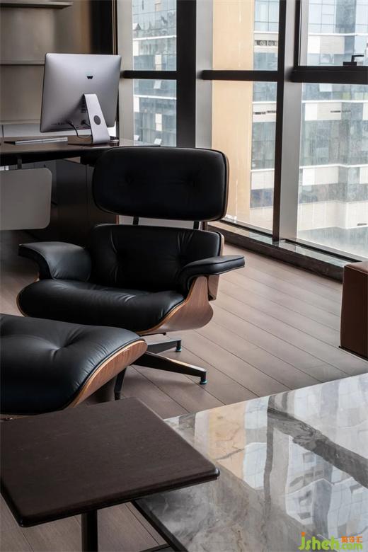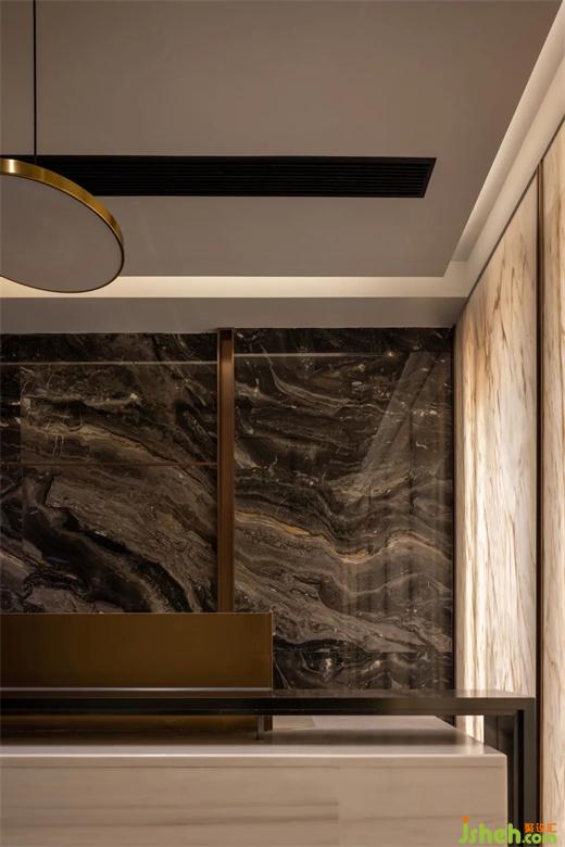质感的线条、精湛的做工兼具易洁性能与视觉美感,德威大厦办公室装修设计在光影流转间展现韵律美感。