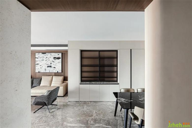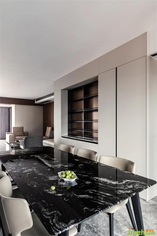 黑色大理石桌面,极简主义汲取灵感,华润幸福里公寓设计将艺术审美暗藏于内,灵动色彩、高雅气质,点缀精致每一餐