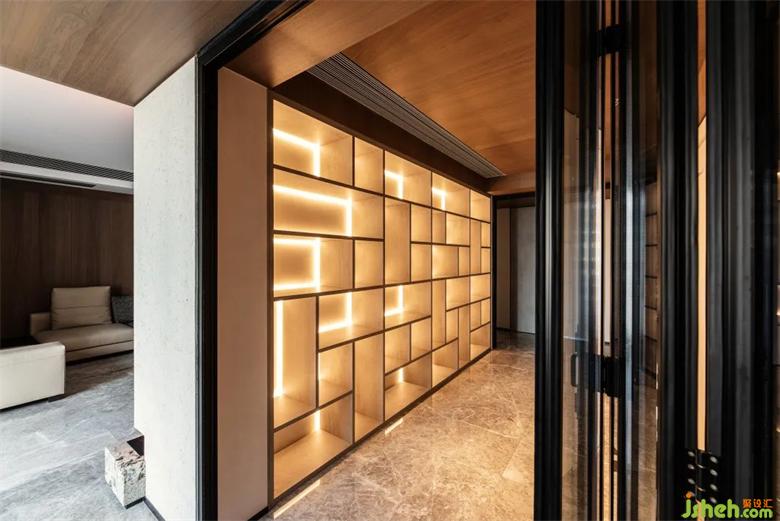 储藏空间整体外观简约流畅、嵌入式光源设计、科学合理的储物格栅,彰显居家品位