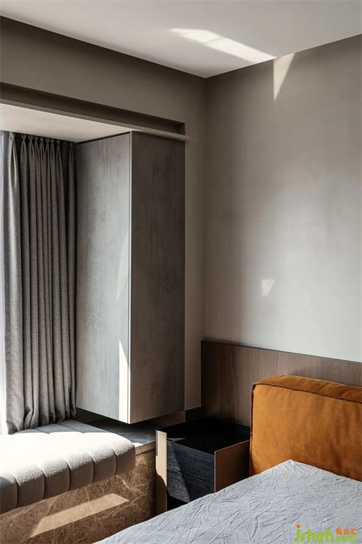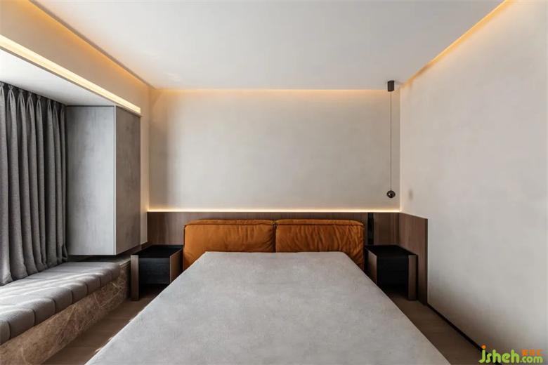 卧室中简约的配色加上一角桔黄,时尚优雅的质感顿时凸显,营造安心舒适的居住氛围。