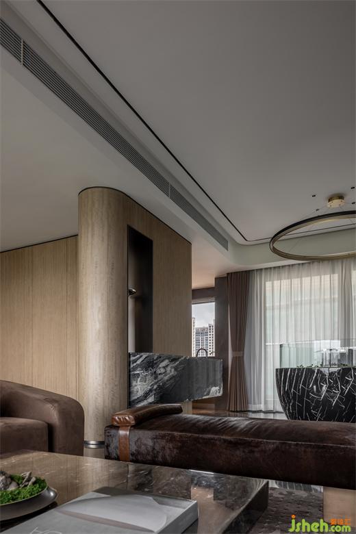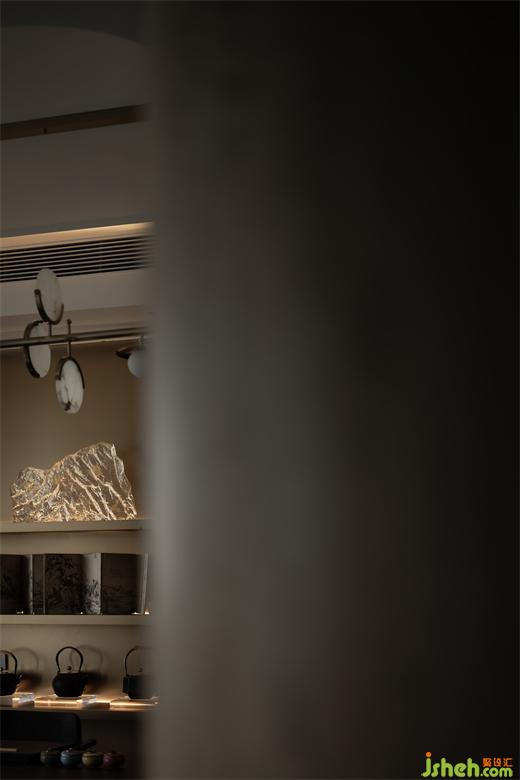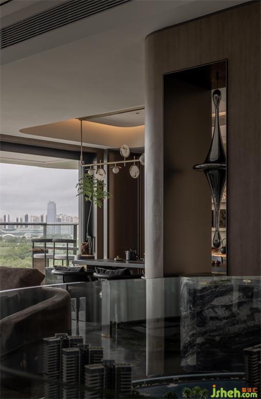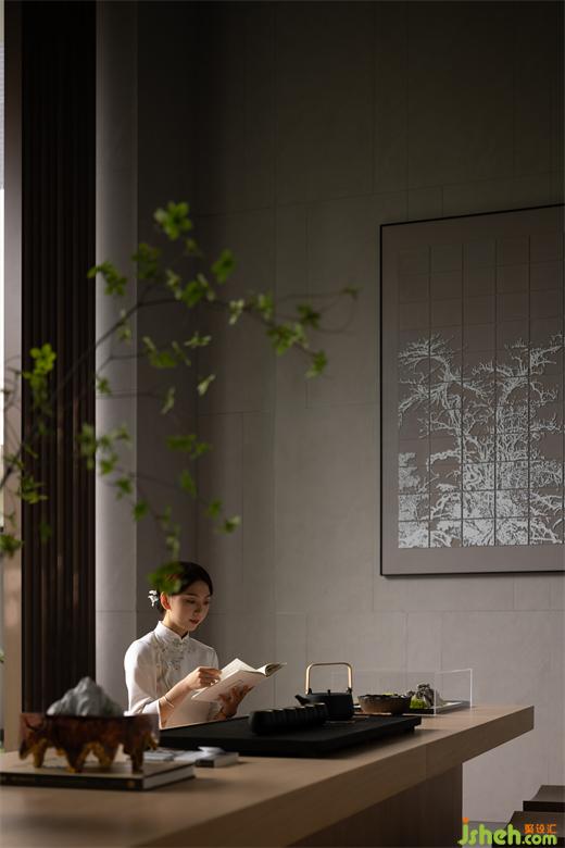 生机勃勃的枝叶形态幻化出禅意的画面,会客厅设计投射了德威江誉城要打造让你爱上生活的家园这一愿景。