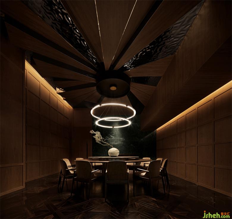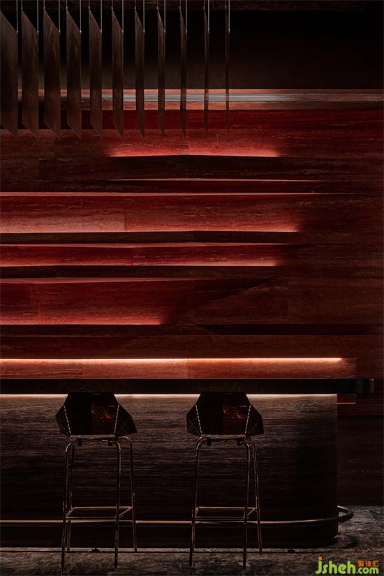 巖面自身的色彩優勢,足以讓空間的色彩自然融合会所设计,深圳会所设计通過不同的材料的顏色在不同空間裏分別發揮著各自的作用,斑駁的金屬肌理漆、質感分明的木飾面、粗礦自然的石材,整體交互融合。