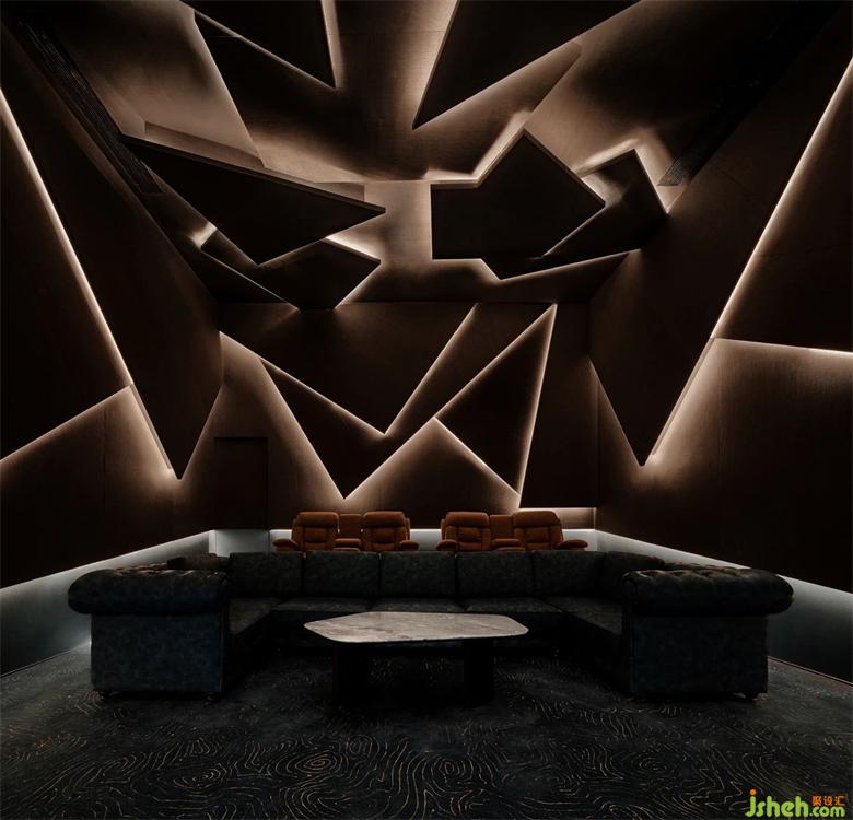 會客區天花用直線光強調頂棚,深圳会所设计包房的線條燈,整體空間點狀光源強調細節,讓空間層次具有變化,燈光與材料的糅合交織,都渲染出靜謐悠然的氛圍,光影的韻律,置身其中,怡然自得。
