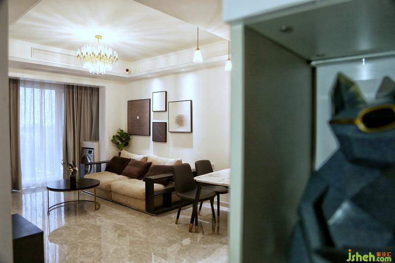 整体色彩低调淡雅,银灰色窗帘勾勒出自然气质,简单的造型搭配流畅的线条,彰显优雅气质,米色+黑色+褐色组成客厅主调,恰到好处地加入金色,让整个空间更显精致