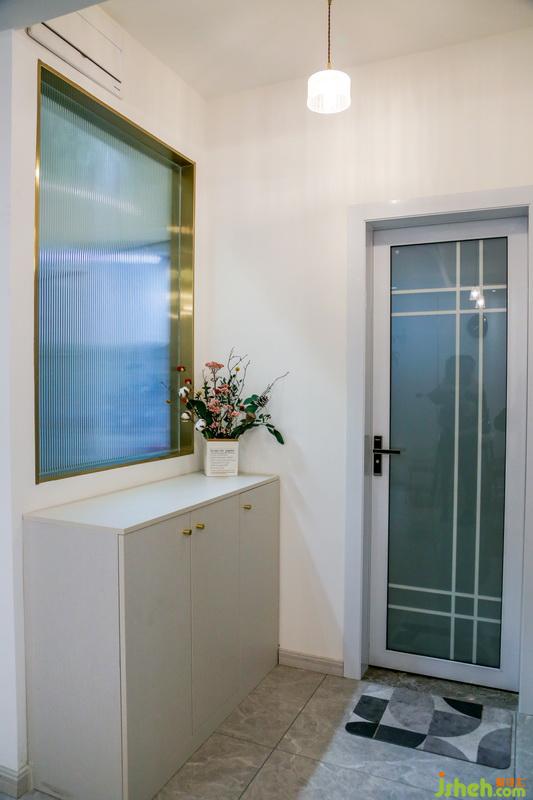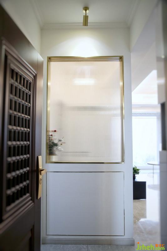 半透明式的隔断设计,既能遮蔽后侧的房间门,又不会影响整体空间的采光,视觉上也有种特别的风情