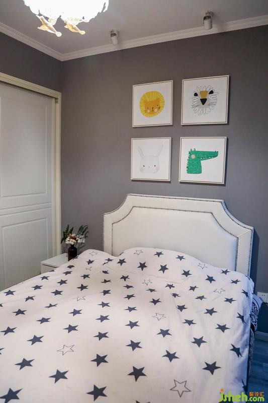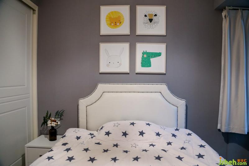 小朋友的房间考虑到长大之后居住,所以使用了更为素净的搭配,简单的灰色调看起来统一又舒服,在时下寒冷的冬天,反而透露出一股温馨,搭配白色的皮艺床头充满质感