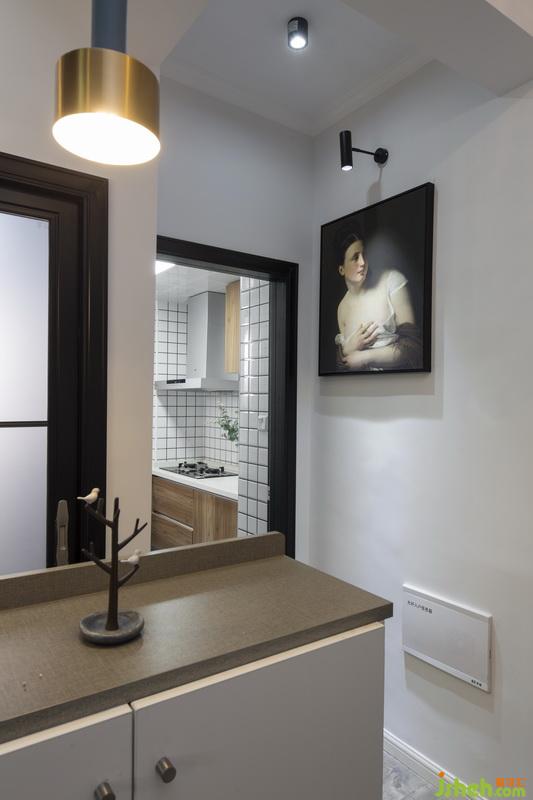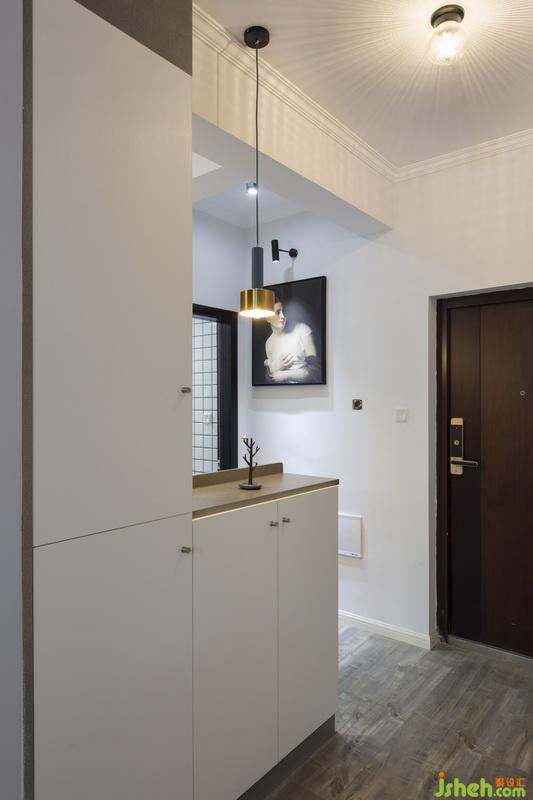 对于小户型来说,难点就在于:如何既能满足储物功能,还能把空间感表现出来。所以在入户区这里,避免原始户型的“过道感”,是设计师首先要解决的问题。