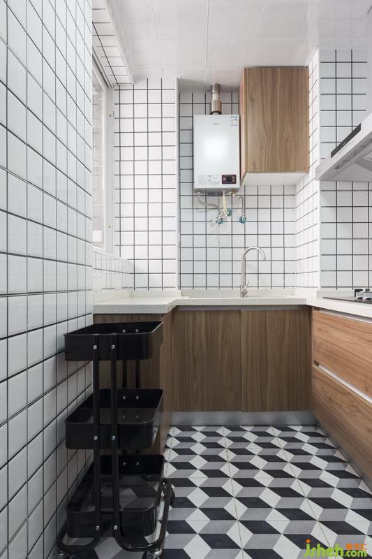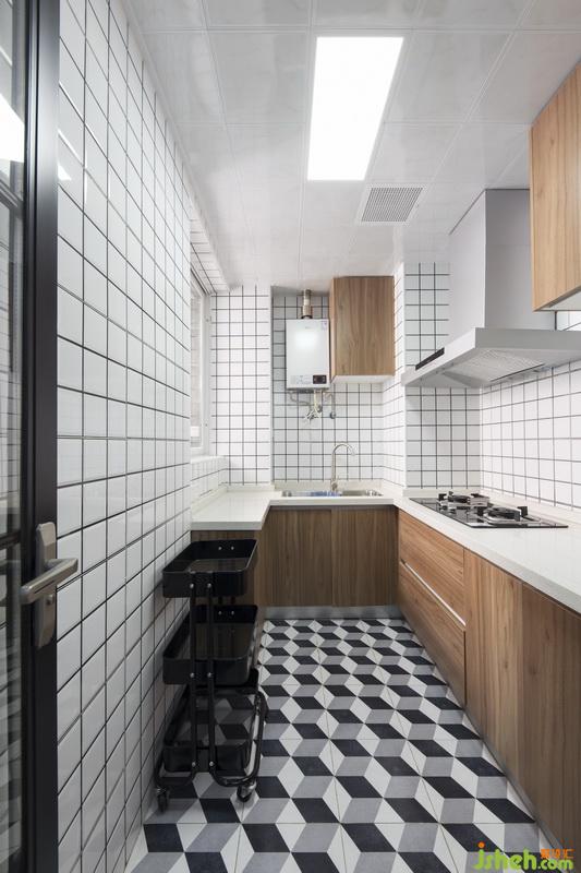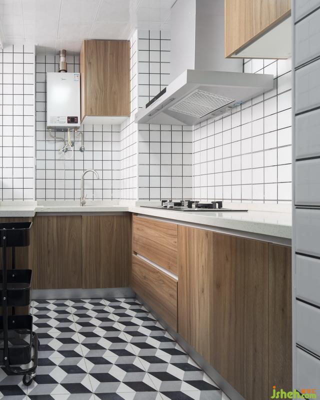 ins风的小白砖搭配黑色的美缝,凸显时尚简约的线条感,视觉上无比清爽。再邂逅原木风的橱柜与吊柜,让人觅得一份自然的归属,小U字型的操作台面和分布合理的灶台、水槽,让厨房使用起来赏心悦目、极其顺手。