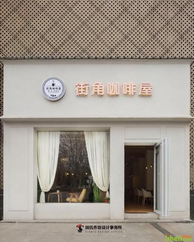 从门店外观来看,室内设计师以最简单的暖白色作为底色,棕金色的亮面圆体的大字作为门店的招牌,黑白简约的圆形咖啡屋LOGO彰显着本店的风格和店主的品味。半落地的巨型飘窗可以让路过的人们清晰明了地看见店内的装饰,与此同时,坐在窗边的客人们也能在享受咖啡的时候看看窗外街边的人来车往,在能忙碌的闹市之中有片刻休憩之地,而自然,清透明亮的窗户也将室外的光线带进室内,使咖啡屋内部更加通透敞亮。
