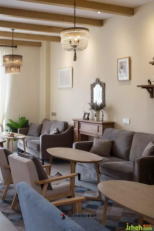 室内设计师自然也将休息区做了几大块的功能划分,室内设计师采用传统的砖墙隔断被现代的磨砂玻璃移门代替,使整个空间即独立又与外界有互动。