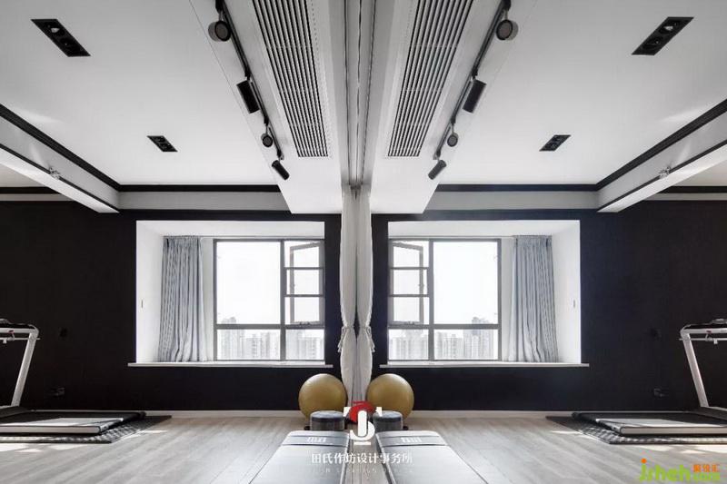 在室内设计师设计之前了解到两位业主都是学习舞蹈的,需要一块独立的空间来练舞,所以把客房和客厅打通,在墙面做了一整面的银镜,银镜不仅可以拉长整个空间的距离感,也可以让整个客厅更加亮堂,这样的话客厅与阳台的墙面就可以以黑色墙面呈现,与整体的黑色色块相呼应。