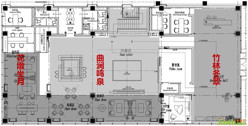 设计团队悉心提炼长沙的城市印象与地域文化,从书院出发将人文元素植入到营销中心空间设计概念中。售楼处设计