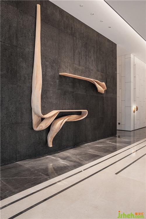 原木质感的飘带造型似遒劲有力的笔触在泼墨挥洒,给空间特有的情景带入与意境升华。
