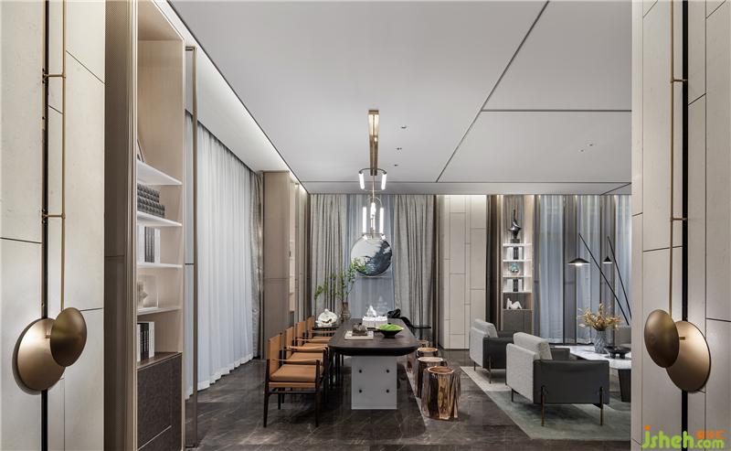 皎洁月色 、明月高悬,露珠清凉晶莹,银河疏朗娴静,凭栏夜眺,微风徐徐 。售楼处设计