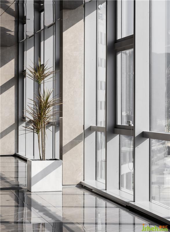 简约的白色背景板,轻盈而透净,延伸出开阔的悠长,就像一眼望不尽的海平线;背后盎然的绿意就像层峦起伏的山势,相互呼应,生机与活力呼之欲出。带给人海天一色,一片苍茫的优雅与闲逸之感。