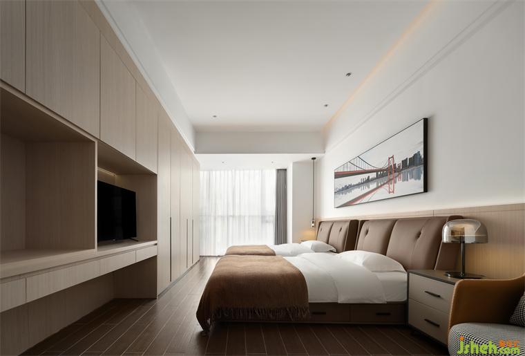 美学考量在双人间的设计中起着重要的作用。简约的风格以其清晰的线条和简洁的色彩,装修公司营造出整体的和谐与平衡。为入住者营造了一个宁静温暖的家的感觉。木质地板赋予房间温暖和舒适的享受。