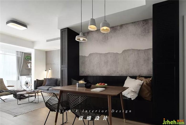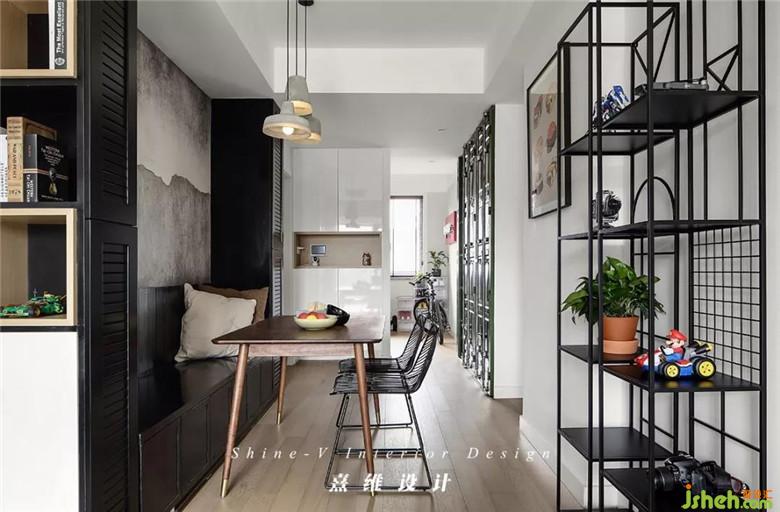 在开间并不是很开阔的区域,定制、整合是较好的改造方式。餐厅利用卡座形式,是能够满足多人用餐并且具有收纳功能,同时又不失空间上的设计美感。