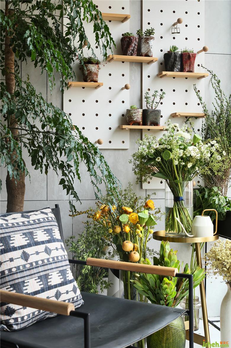 阳台的宽度很不错,适合用作休闲使用,满墙的洞洞板设计,方便屋主养殖花木,搭配休闲椅,是个很不错的放松小角落。室内设计师