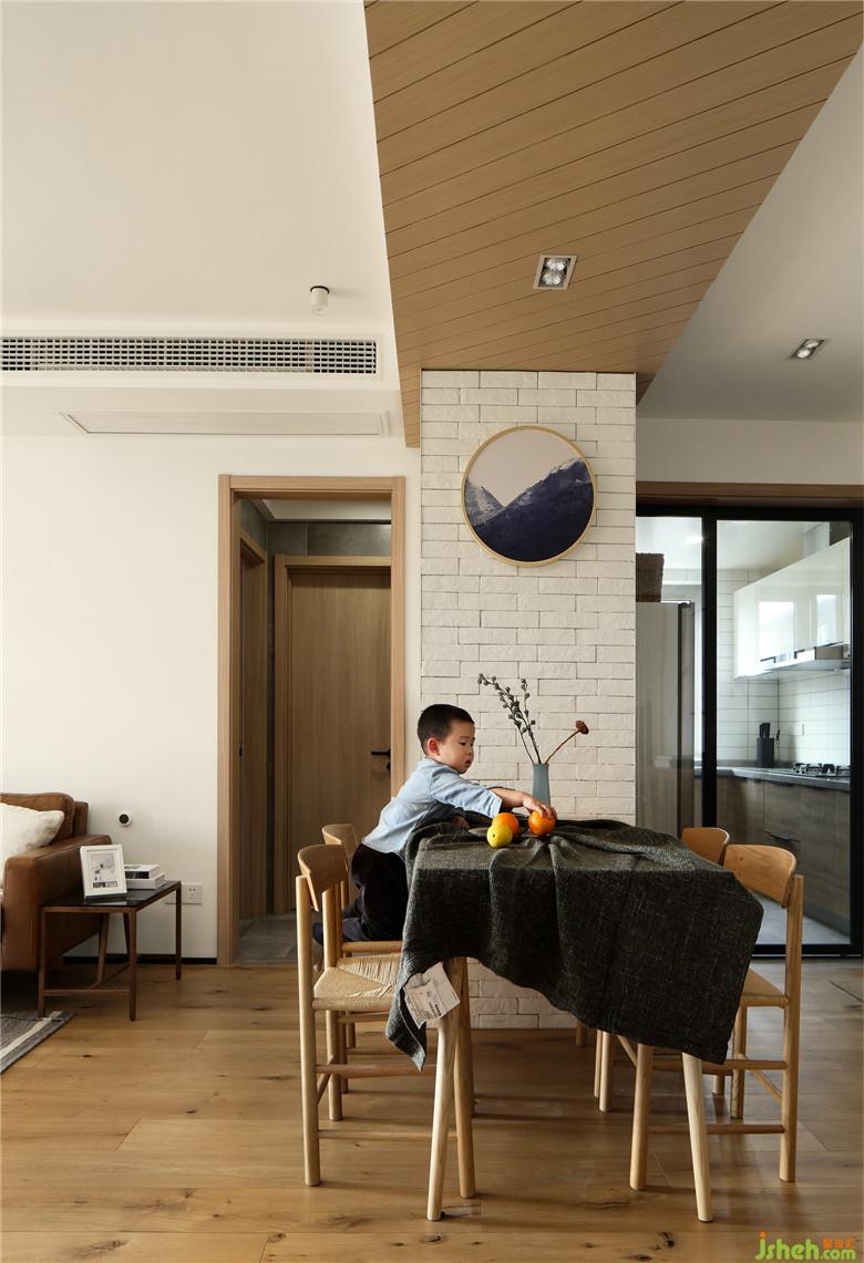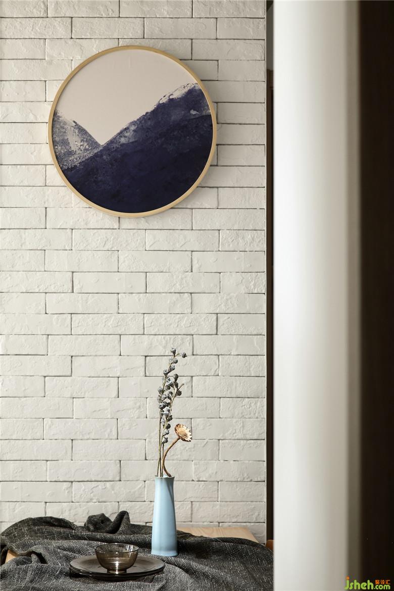 ▲餐厅的一面墙满贴白色文化砖+满刷白色乳胶漆,精心挑选的装饰画,木质温润的餐桌椅,每件单品的选择都是想为家增加一抹艺术气息。