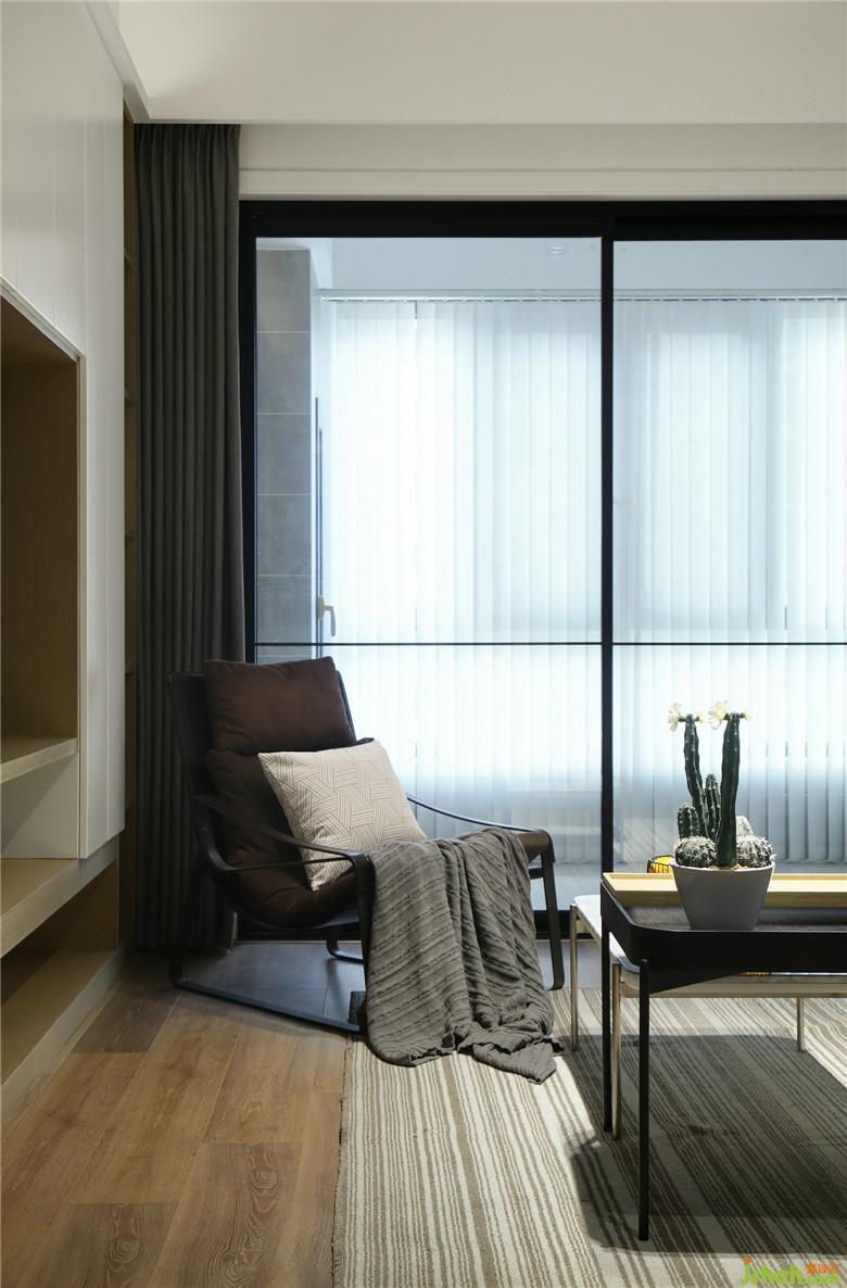 ▲本案整体空间内部采用了许多的自然元素,色彩尽量的简化,入户左手边结合墙体增加鞋柜,白与木色的定制鞋柜搭配着温暖的灯光,营造出温暖而利落的视觉感受。