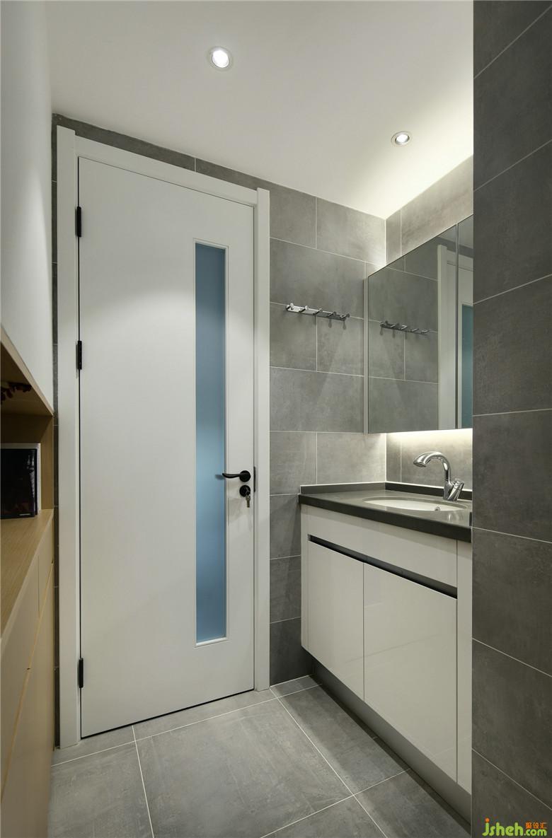 ▲将原户型不必要的隔墙进行拆除,以玻璃门增加空间的采光及通透感。干区空间用色层次分明,以最为经典的黑、白、灰三色营造出空间的利落清爽。