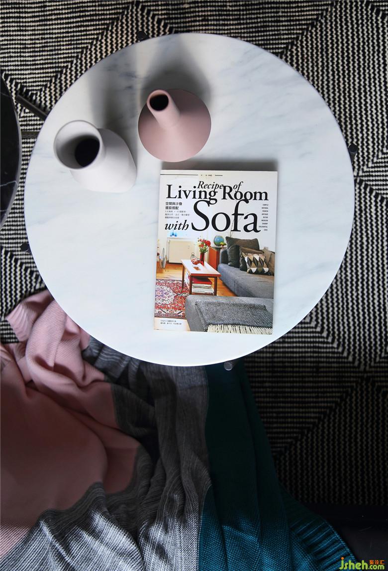 ▲清新而靓丽的色彩,舒适而具有腔调感的家具,色彩与材质的搭配尤为重要。布艺沙发、大理石茶几、木质单人椅,温柔与冷硬,在多元素的装点下,却能达到一种平衡状态,和谐且有趣。客厅的沙发背景墙室内设计师选择了少女心满满却不落俗套的脏粉色系,而一些小配饰也与之呼应,茶几上的小摆件也精心的选择了同色系。