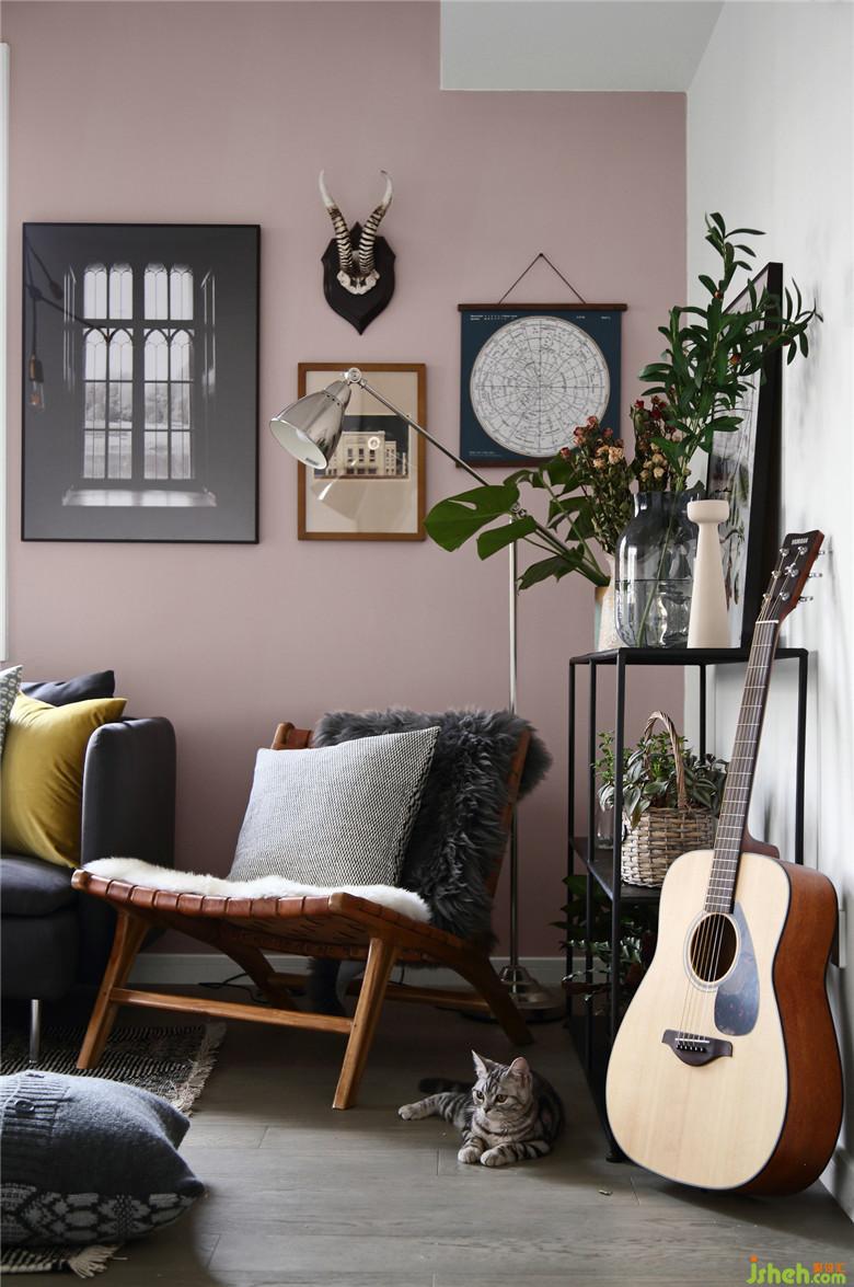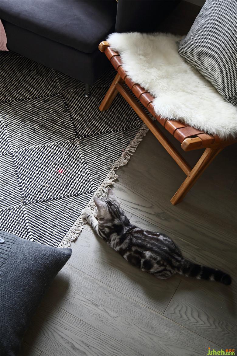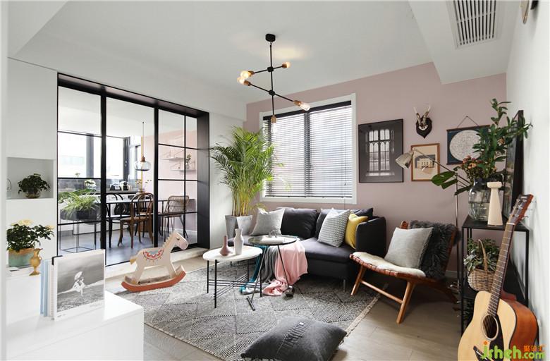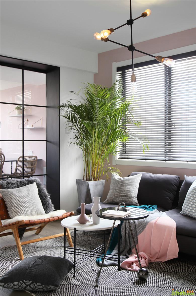 ▲空间中的植物可以给视觉带来舒适感,室内设计师利用黑色置物架作为各种绿植的展示架也是空间中的一个亮点,而客厅中的窗户也使这片区域更加敞亮。