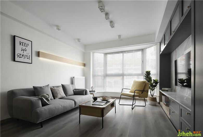▲客厅空间以白色为基底,清爽而淡雅,阳光恰到好处的洒进室内,天然的材质与简约质感的家具,让春日舒缓的氛围弥漫整个空间。在以“兼具美与实用性”的原则下,室内设计师首先应屋主需求打造一组电视柜,以虚实相间的处理手法满足日常的储物需求。