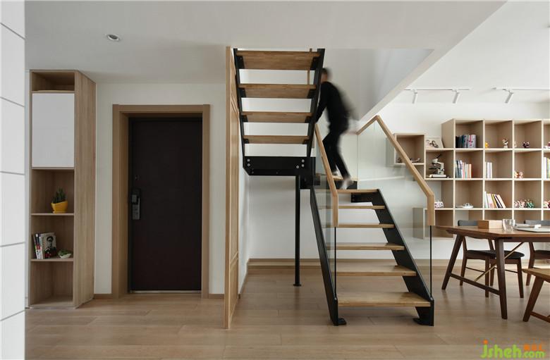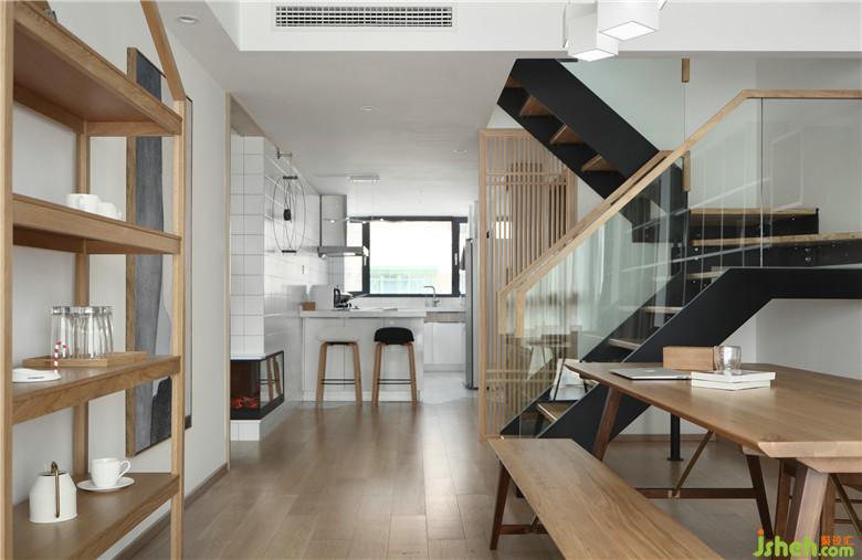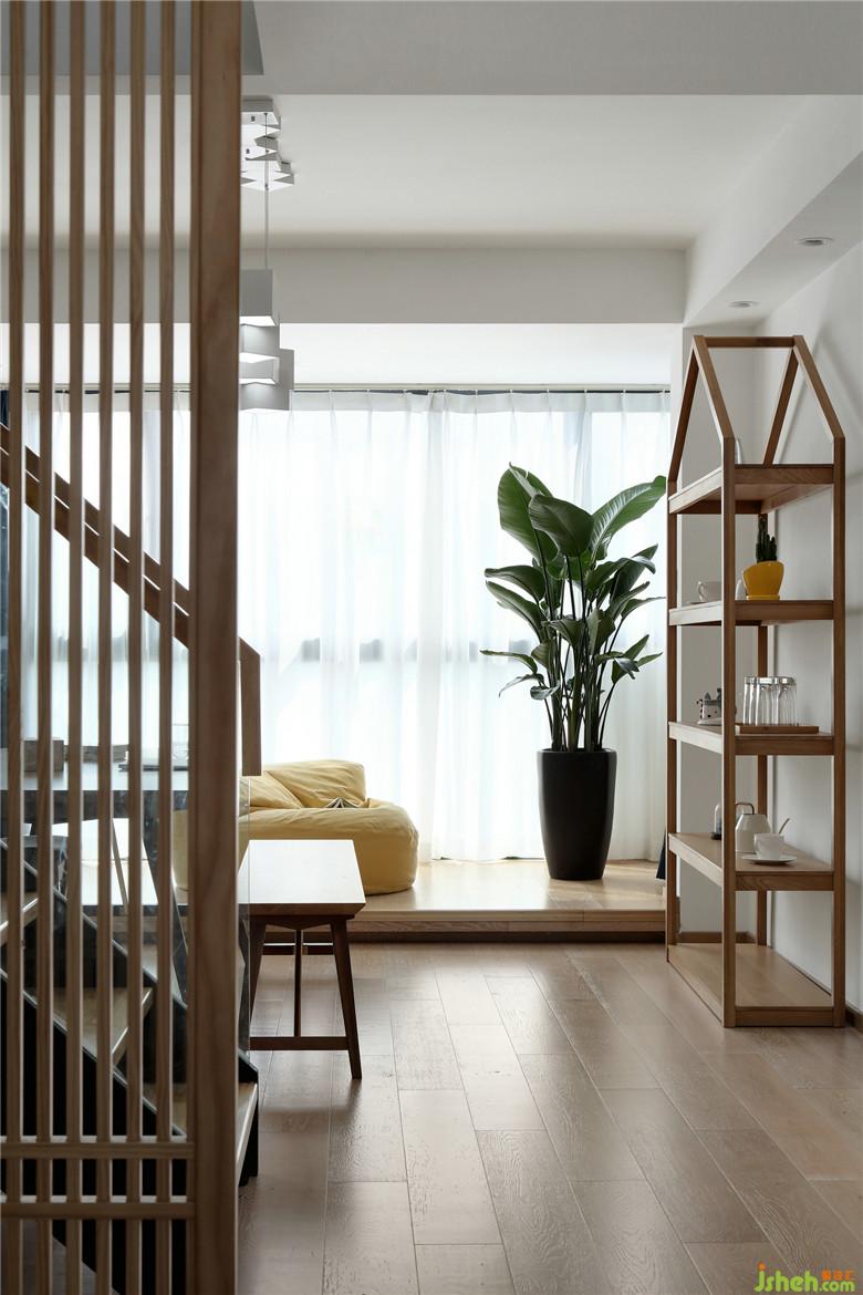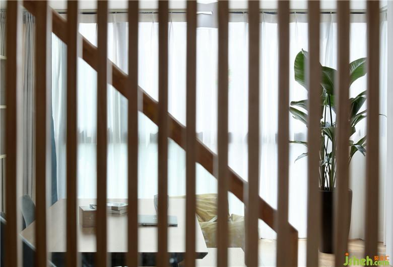 ▲入户室内设计师设置了木格栅,一方面起到玄关隔断装饰性作用,另一方面也规避楼梯脚,避免进门看到楼梯的尴尬。而木格栅的虚虚实实,半开放的形式也让整个空间贯穿起来,使入户开阔。
