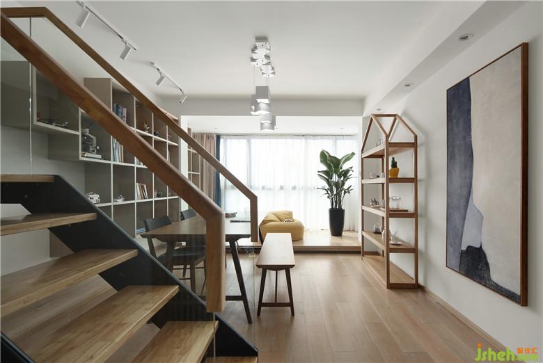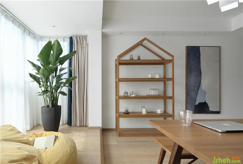 ▲原先的阳台形式抛弃掉,室内设计师将这块区域融入整个学习休闲区,增加了使用空间的同时,也使阳光充分的洒落这片区域,搭配着腔调感满满的装饰画,闲暇时一家人席地而坐,读书做游戏。是的,生活需要仪式感,需要自由式空间。而开放式的布局令光线、空气、甚至是映射进室内的绿植都成为了贯穿功能区的线索,纯净的白色调,天然的木元素,整个空间显得轻盈而灵动。