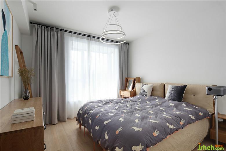 ▲主卧依然延续着空间基调,定制的白色衣柜和木色成品家具很好的搭配融合,满足日常生活需求。这里尽情接受着来自大自然的光线赐予,营造出一个可以卸下疲惫的放松空间。