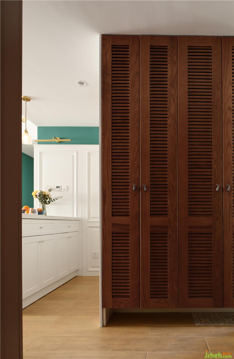 ▲正对入户门的位置室内设计师设置了收纳空间,实木百叶柜门展现了品质感,百叶样式的设计增添通透感,使入户第一眼不会觉得太过死板。充足的储存空间可以满足日常的鞋子的收纳需求。