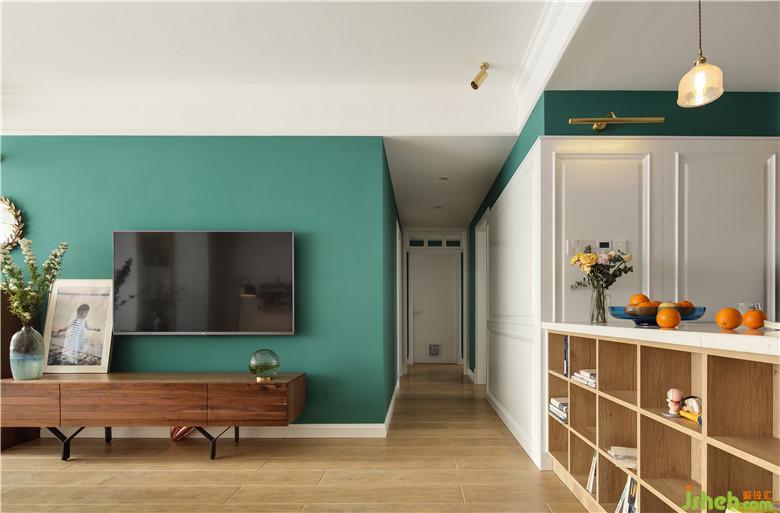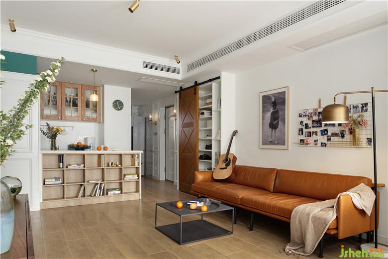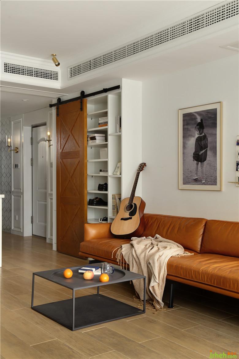 ▲室内设计师在材质、颜色搭配或是功能区布局上,以灵动、多用途进行规划。客厅部分的收纳空间采用了半开放式谷仓门的形式,半开放式的设计半藏半露,凸显了生活趣味感,谷仓门的利用,带来了美式乡村的气息也为客厅空间添加了个性特色。