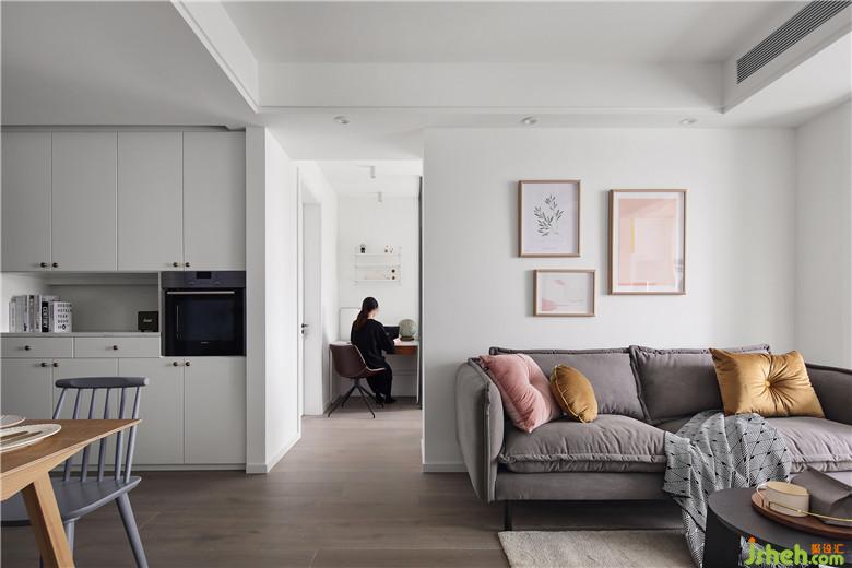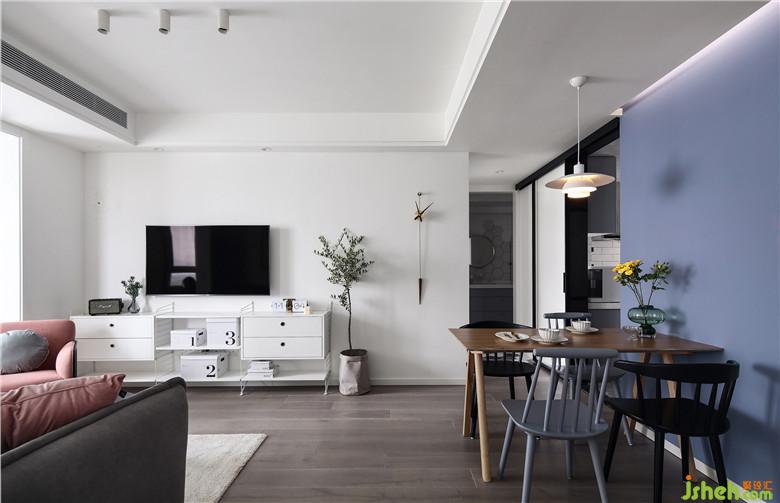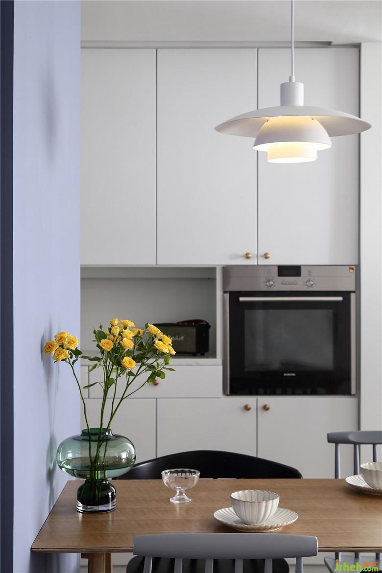 室内设计师将原本的餐厅改造成次卧,餐桌放在厨房门的一边,家中的公共功能区集中起来,动线也更加顺畅。