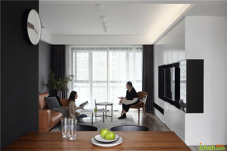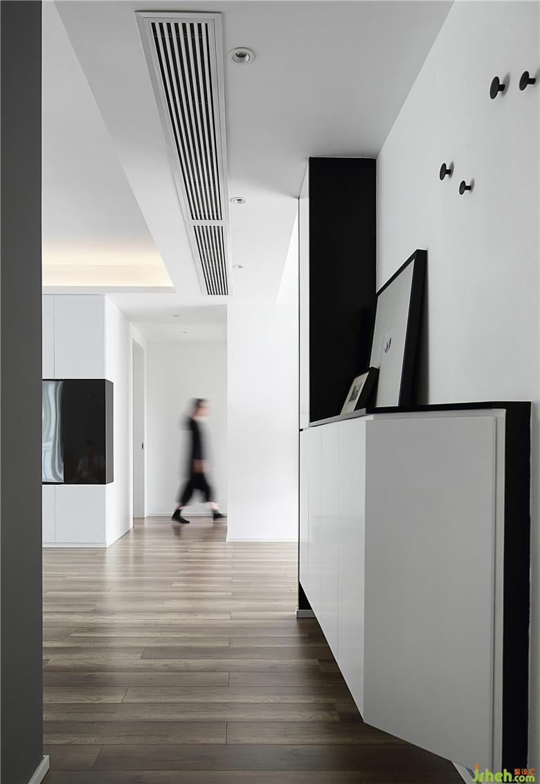 ▲入户之后黑白的配色映入眼帘,是现代风格的前奏。一侧斜边的鞋柜不会给入户处的走道带来压抑感,打开空间。
