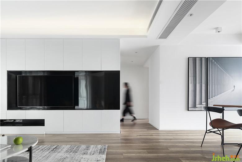 ▲柜门采用弹开器,并没有外装拉手,室内设计师让电视背景墙的完整和简洁得到了最大程度的体现。