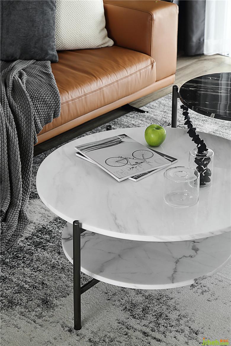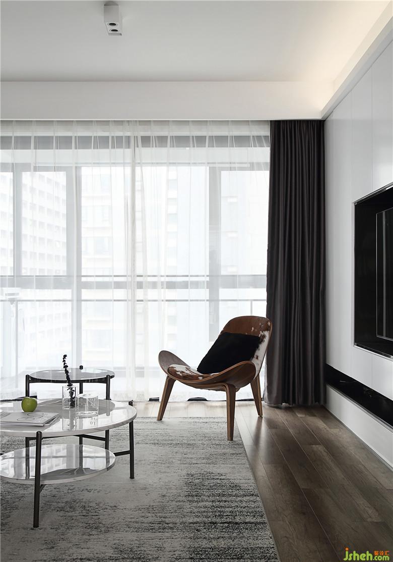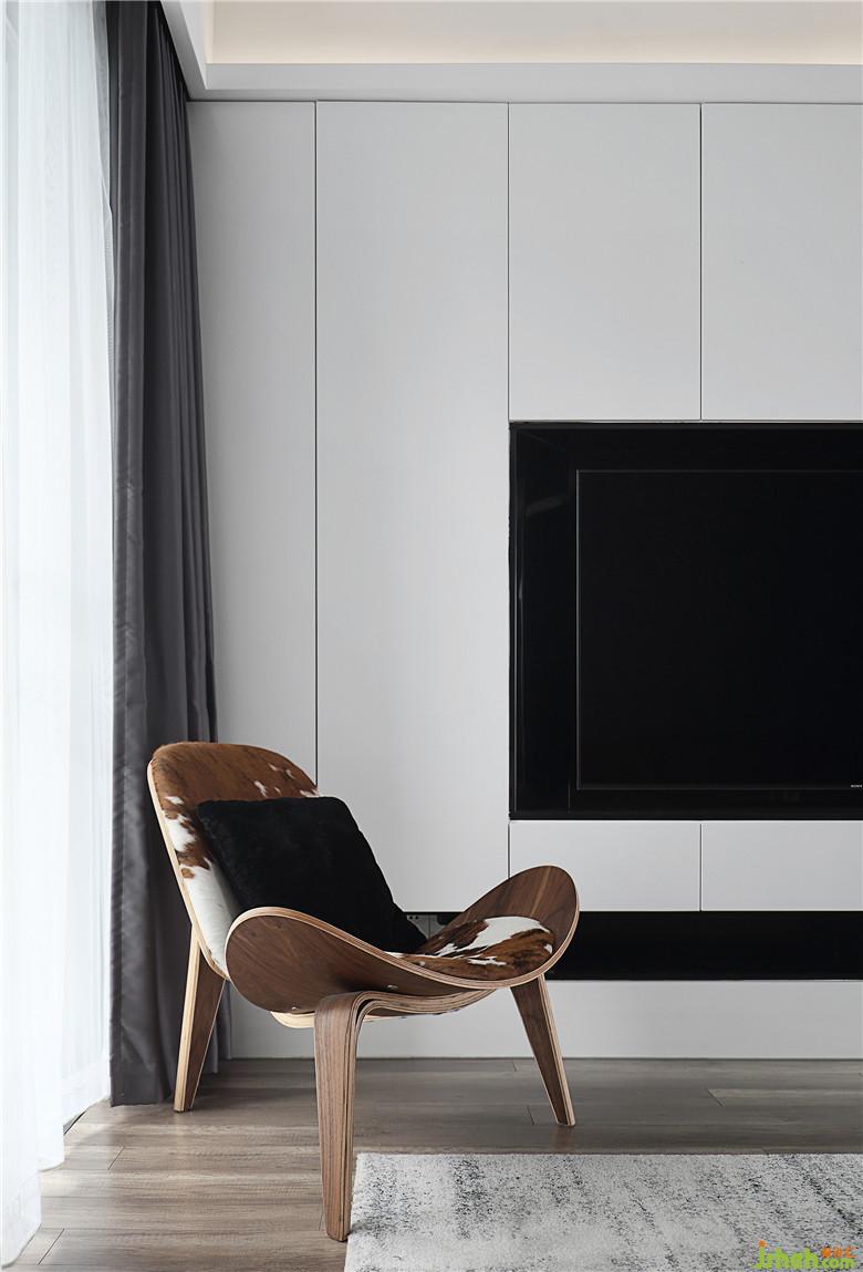▲皮毛与木质结合的飞机椅,设计感十足的外形与原始气息的毛皮碰撞,是家具也是很好的装饰。大理石和铁架结合的茶几,造型灵巧别致,颜色上是与电视背景墙呼应的黑与白。