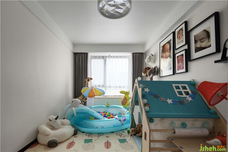 这样的儿童房应该是每个人童年的梦,小小的童话中一样的屋子,装满球的游泳池,角角落落有很多小动物,墙上挂着的是孩子的照片,孩提时候一定是幸福的!