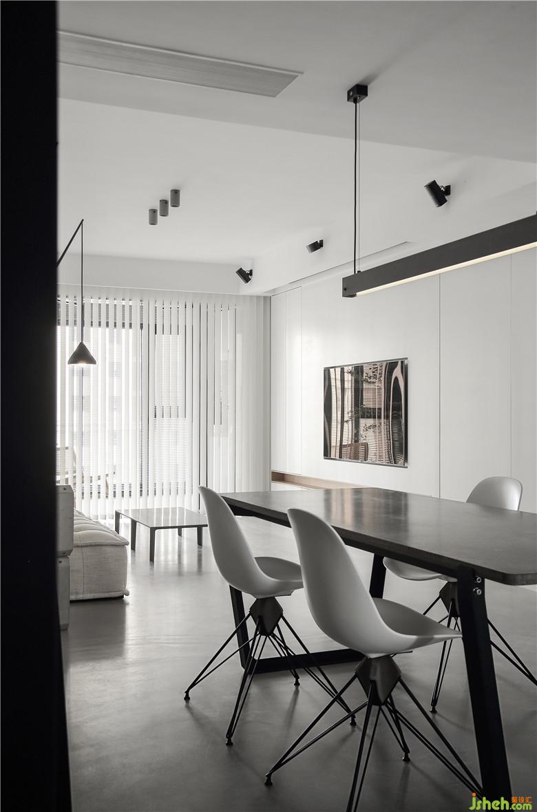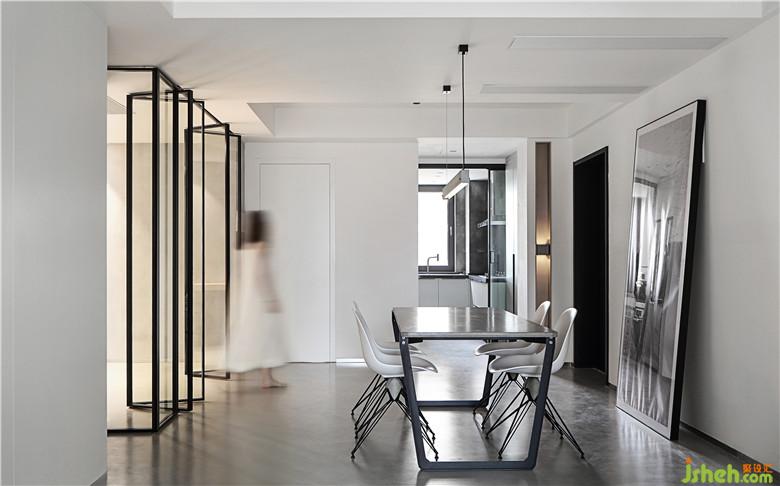 餐桌周边并没有放置餐边柜,略微空旷的布局让清水混凝土的诗意在空气中滋生。