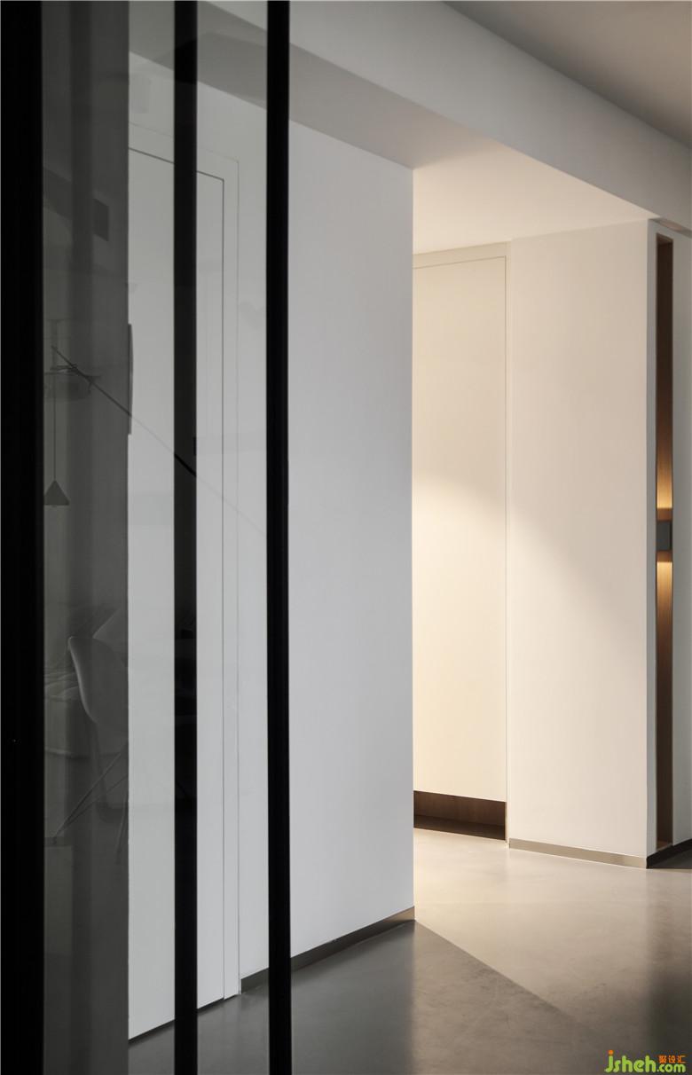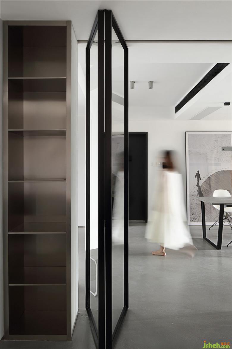 ▲只在书房的一角放置木工打底、不锈钢折面的柜子,与整个空间的风格十分契合,硬朗、冷淡带有鲜明的个人喜好色彩。