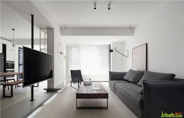 ▲客厅与餐厅空间由于部分墙体为承重墙,不能拆除,于是设计师巧妙的利用承重墙体为大空间作了简单的分割,不仅增添了层次,也不影响阳光在室内更充分的铺陈下来。