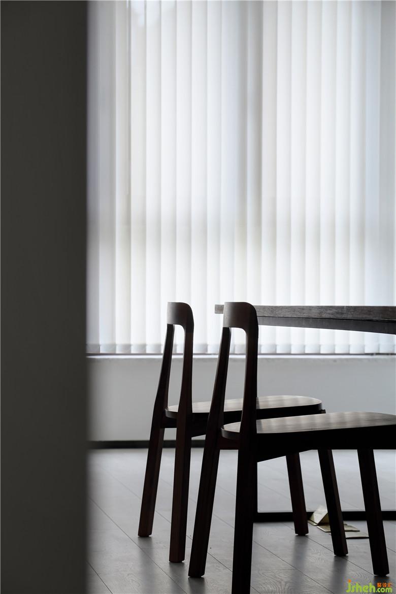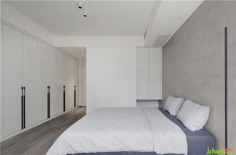▲墙体向餐厅的推移,为主卧留出足够柜体空间,收纳柜选用白色烤漆柜门,落地柜采用黑色长拉手避免白色过多的苍白感。