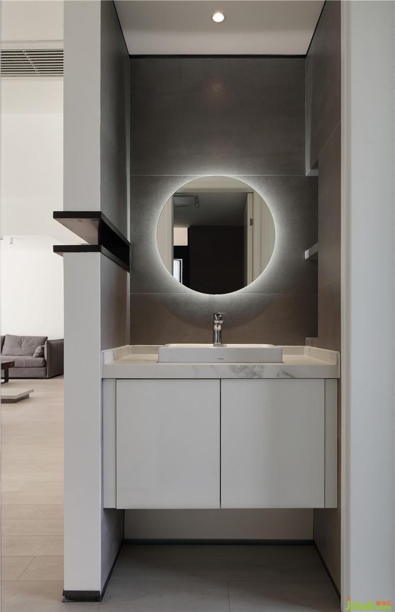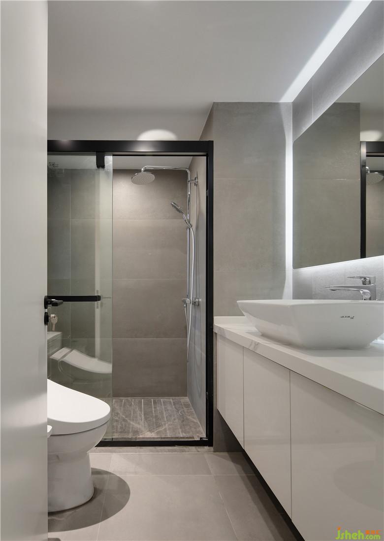▲主卫在空间上没有做干湿分离,利用颜色白与灰做了功能的区分。