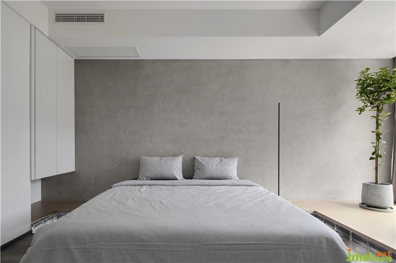 ▲主卧床头背景墙设计师选择了磐多魔墙面涂料,清水灰的细腻让空间呈现出优雅清爽,简单又朴素的别样感受。主卧与餐厅的分割为家中增添了独立的洗涤晾晒区域,也为卧室保留了一处榻榻米,让主卧空间更富变化。