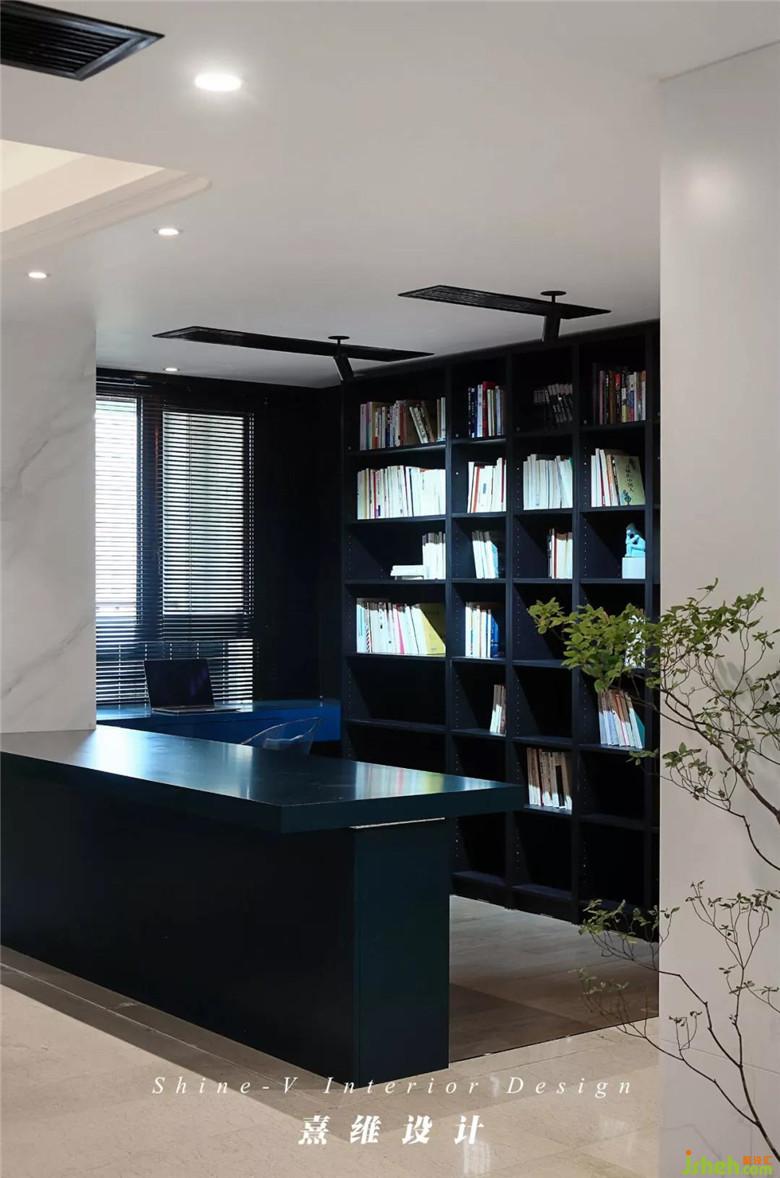 在家中,除了卧房与卫生间必备的私密性,其他的空间规划可以从打开的方式入手,会为生活带来更佳的体验。拆除玻璃隔断,利用现场制作加定制的蓝色长书桌以及木地板将书房从餐厨空间旁脱颖而出,恢复通透感,开放的形式让书桌也可以在多人用餐的情况下替代餐桌的功能,为之后生活中相聚时刻准备.