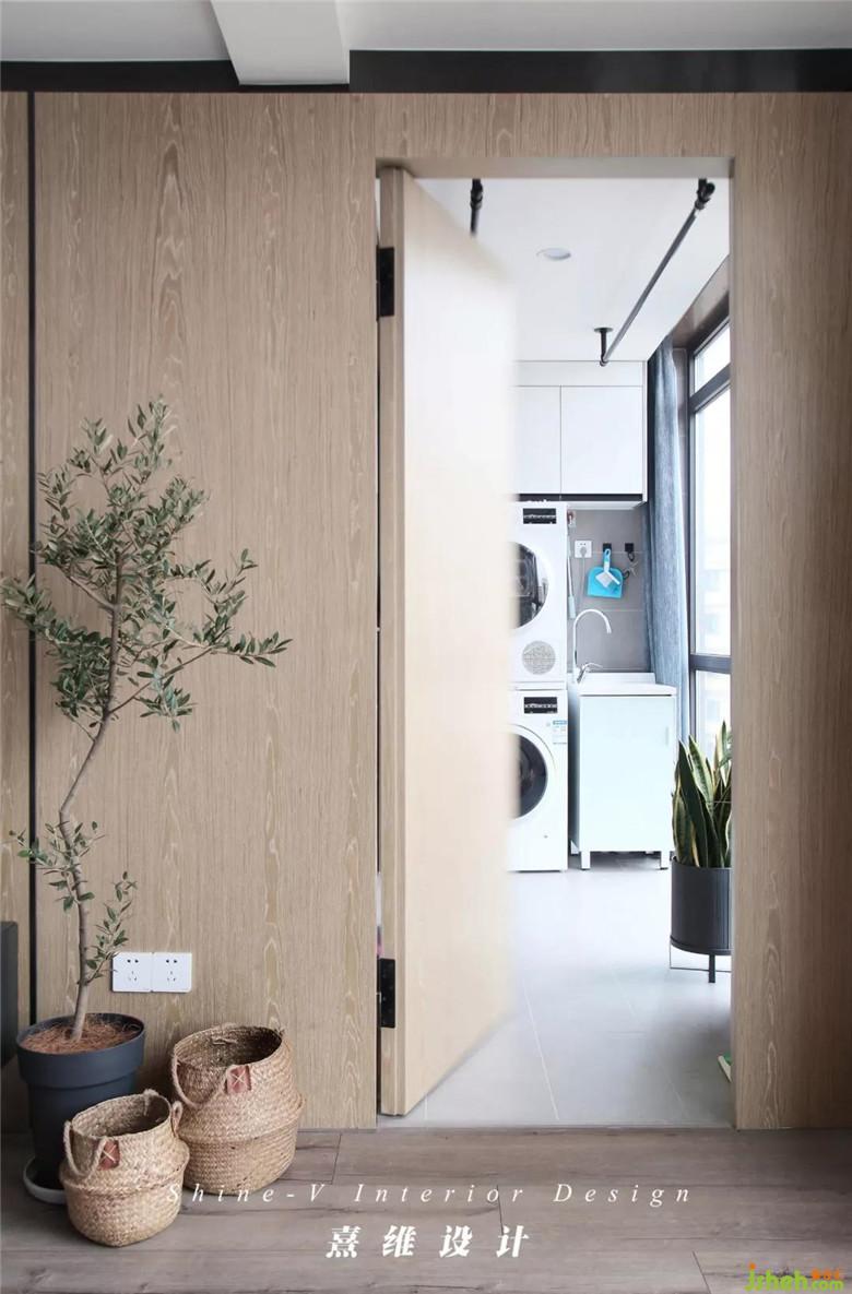 ▲木饰面绵延至阳台处,以隐形门将阳台分割为生活阳台与休闲阳台。