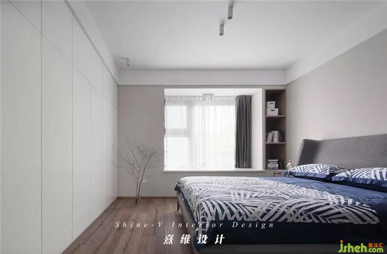 ▲卧室墙体朝客厅方向的推移,让主卧拥有了整面素白的衣柜,补充了较小的衣帽间无法提供的充足收纳空间。窗边的开放式收纳靠近床头,陪伴睡前时光的书本可以置于此处。日长如常,舒展的心境是面对生活的最好姿态。
