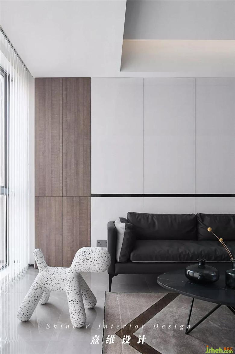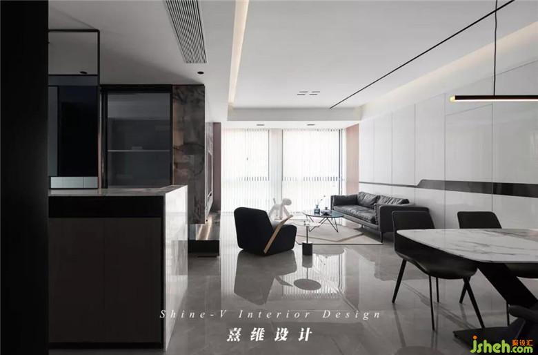 ▲打开家门,餐厅与岛台列于门的两边,装修公司将视线延伸至拥有两扇大落地窗的客厅处。空间中黑白色的搭配引入克制与安静的力量,不比色彩缤纷所饱含的张力、可传递的丰富情绪,却更适合抓住快节奏的城市生活中难得的静宜。