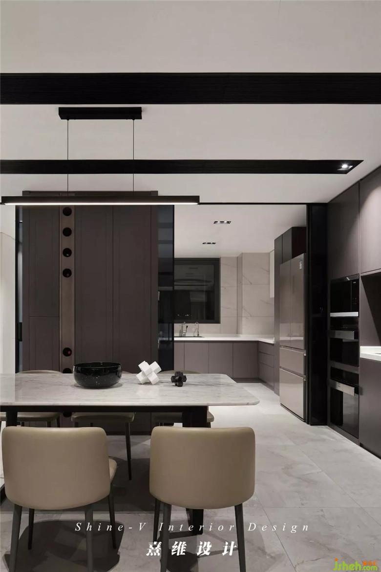 ▲大空间中餐厅之于厨房、居住空间的联系。