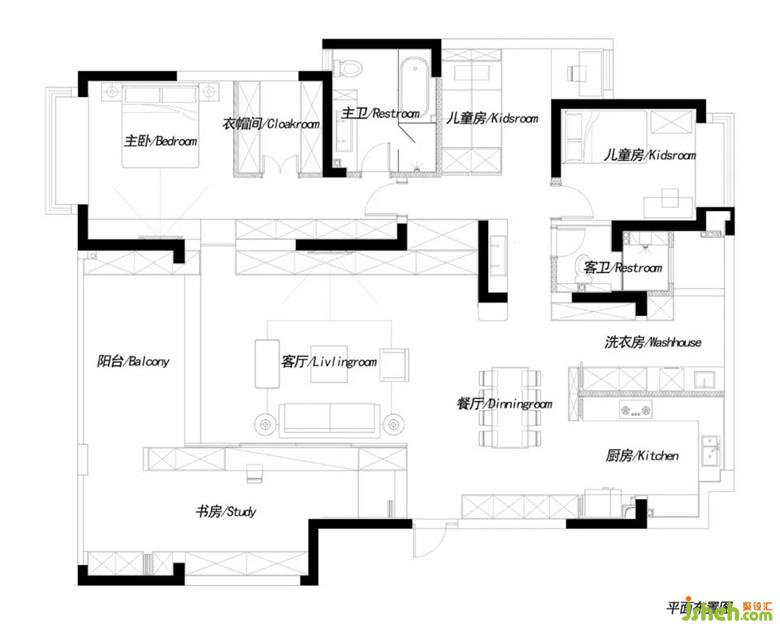▲起居空间与居住空间走道位置的重新规划,让客卫干湿分离得以完全实现,干区被调整到一面承重墙的小夹角中,客卫位置的微调依然紧邻儿童房,又变得更方便起居空间使用。